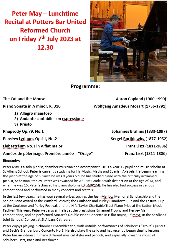 Lunchtime Recital Friday 7th July at 12.30 – Peter May