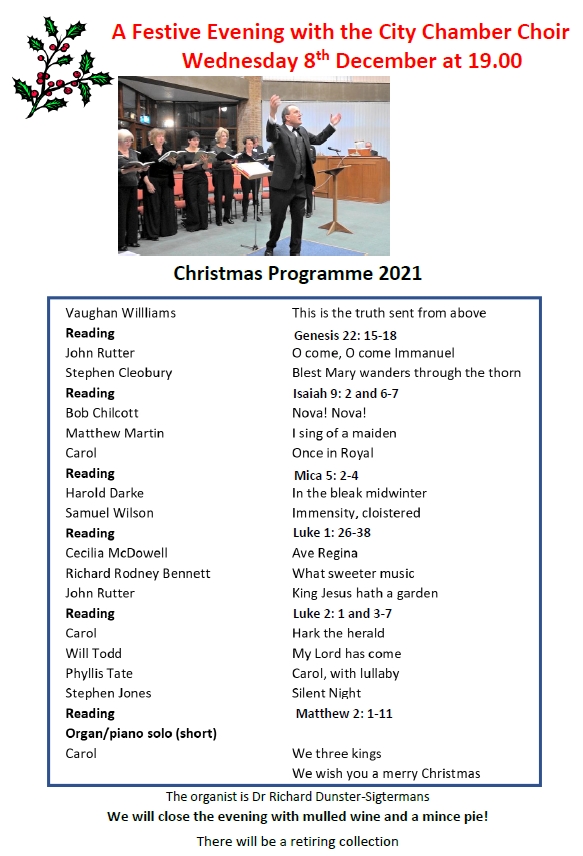 We welcomed the City Chamber Choir back for a Festive Choral Concert to kick off this year’s Christmas activities. We’d had the CCC sing us out of lockdown in July, and hope very much that this concert will not have sung us back into more severe restrictions than Boris’s current Plan B.